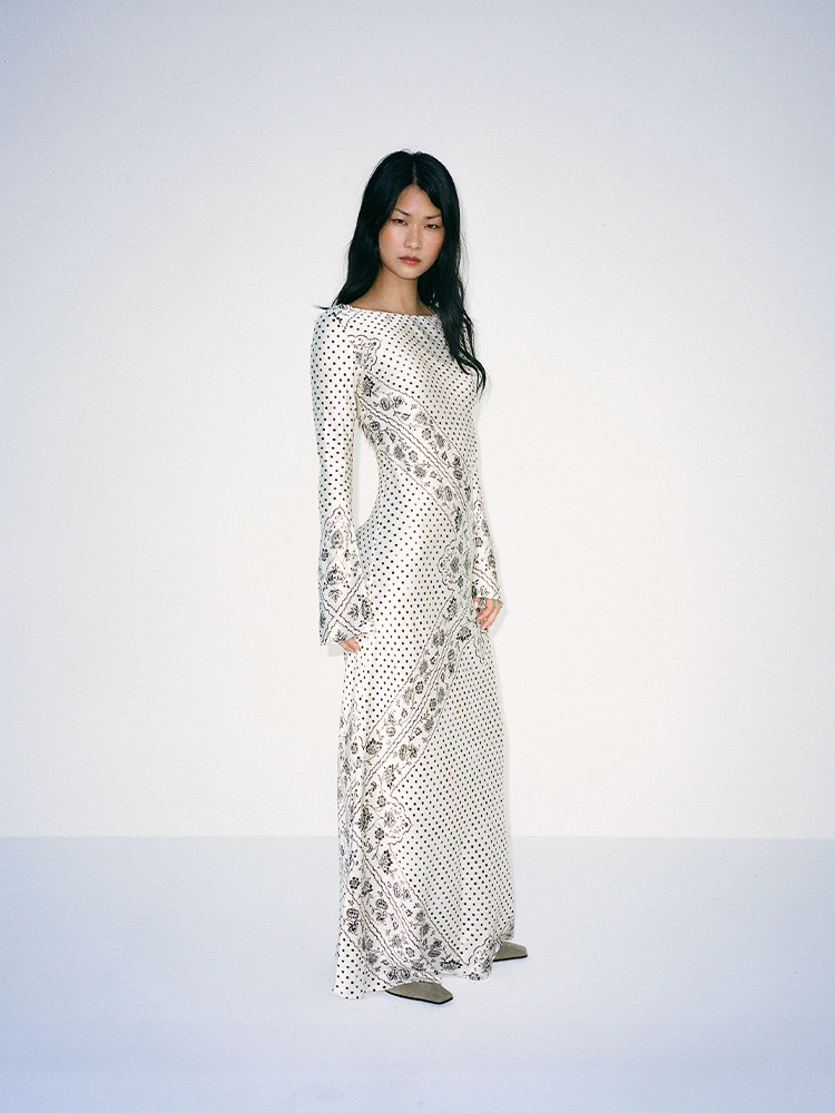 - Full length maxi dress with long bell sleeves